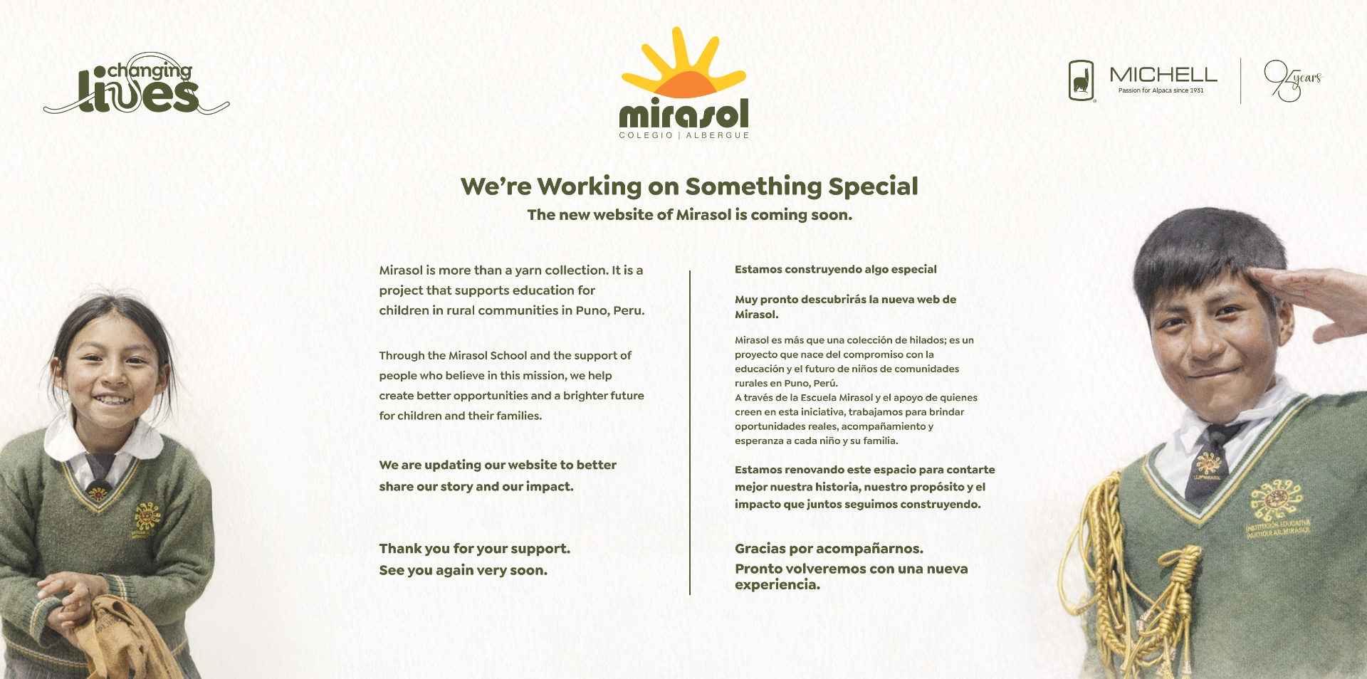 The idea behind Mirasol Project is simple: To support the children of communities in Munani, Neque Neque and Mallkini in Puno with their education through the Mirasol School, with the sales of the Mirasol Hand Knitting Yarn Collection and donations from friends and other contributors.